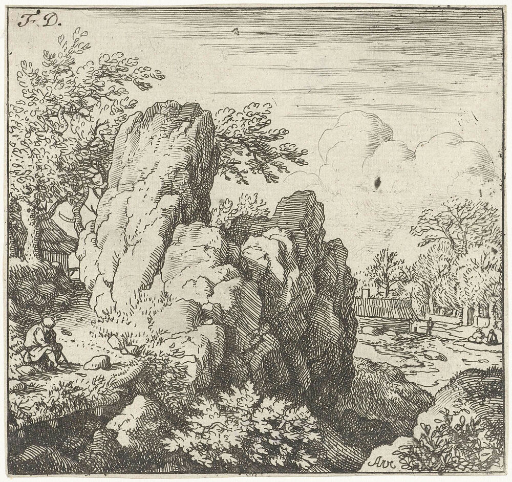 Landschap met grote rots
