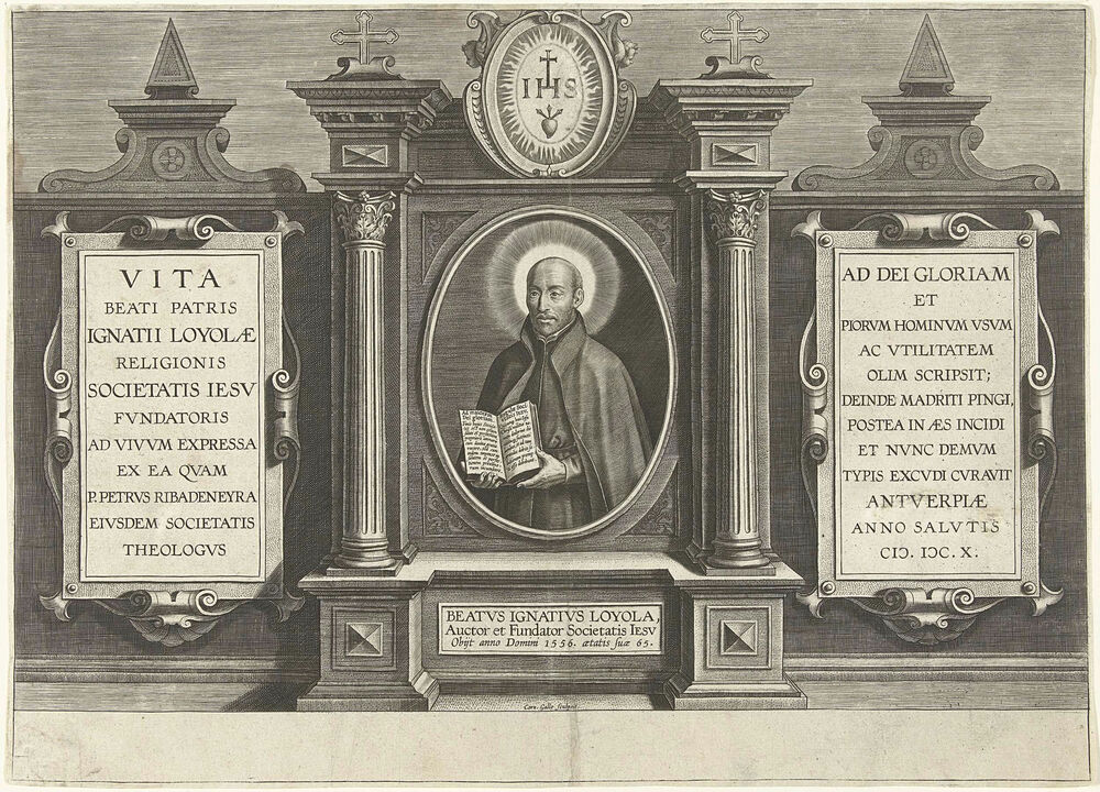 Titelprent van een serie over het leven van Ignatius van Loyola